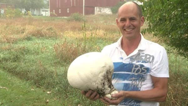 艾德两手捧着一颗白色大球,乍看以为是恐怖的骷髅头,别怕别怕,凑近看仔细一点,这其实是蘑菇啦!记者上门采访,拿一个篮球做比较,竟比篮球还要大。密西根州大学生科系教授指出,「它们显然是巨型马勃。就我知道的,巨型马勃是全球最大的蘑菇。」